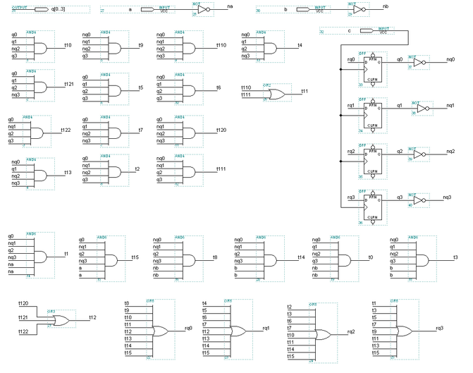 После получения таблицы истинности автомата создается функциональная схема в САПР Max+ Plus II без минимизации