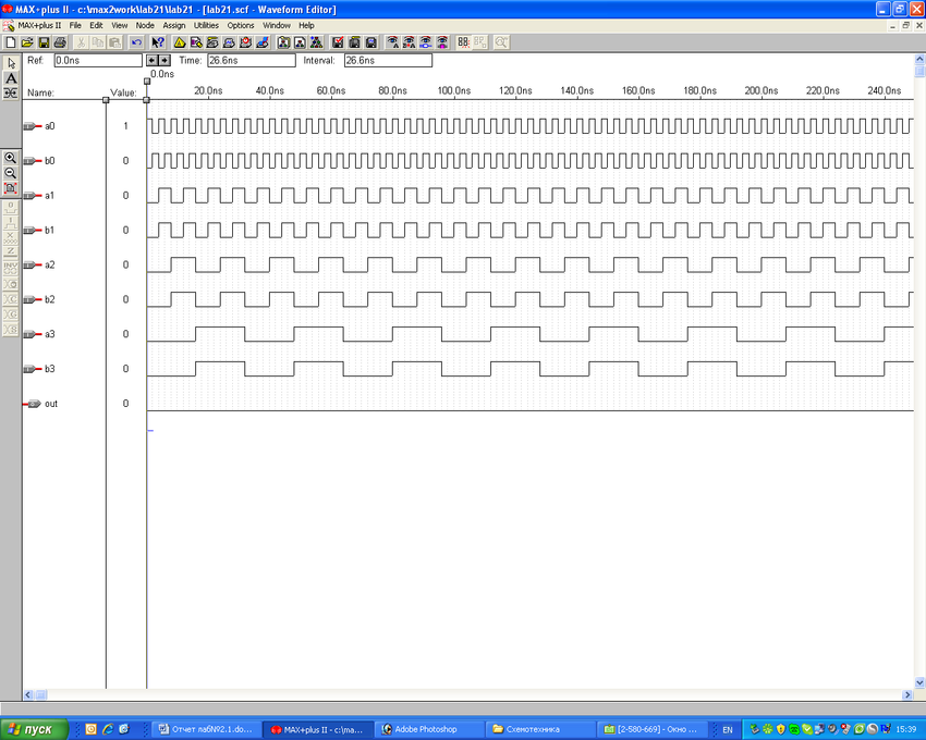 Спроектировать логическую схему при помощи графического редактора САПР MAX+PLUS II. Исследовать работу схемы с использованием сигнального редактора САПР MAX+PLUS II.