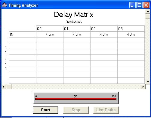 Для анализа временных задержек запускаем временной анализатор (Timing Analyzer) и нажимаем кнопку START.