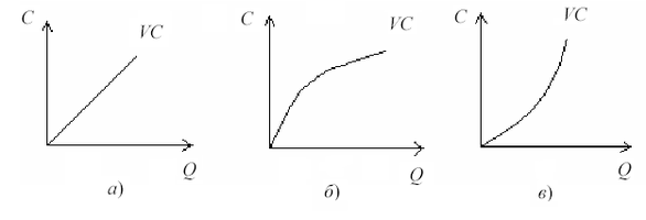 Динамика переменных издержек при изменении производства и реализации может быть представлена в трех вариантах: