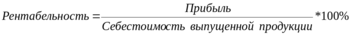 Рентабельность продукции - отношение прибыли от реализации продукции к полным издержкам (себестоимости) ее производства и обращения, выраженная в процентах: