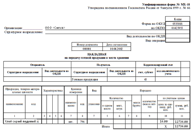 Исследуемое предприятие ООО «Сигма» производит и реализует хлебобулочные изделия, также в основной вид деятельности входит оптовая и розничная торговля. В исследуемом предприятии учет готовой продукции ведется с использованием счета 43 «Готовая продукция», счет 40 не используется. Также на предприятии создается резерв по сомнительным долгам на случай не оплаты покупателями и заказчиками своих договорных обязательств.