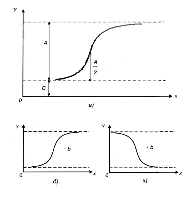 a, b — параметры, определяющие наклон, изгиб и точки перегиба графика логистической функции (рис. 8.1).