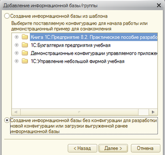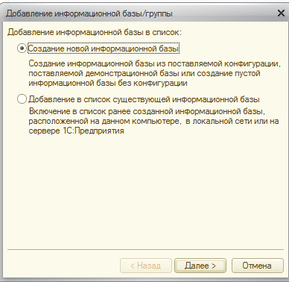 Прежде чем начинать работу необходимо создать новую информационную базу.