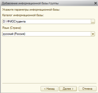 В поле Каталог информационной базы укажите ту папку, которая была создана в п.1.