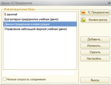 2. Запустите программу 1С: Предприятие 8.2 (Учебная версия). На экране появится окно Запуск 1С: Предприятие (рис. 2).