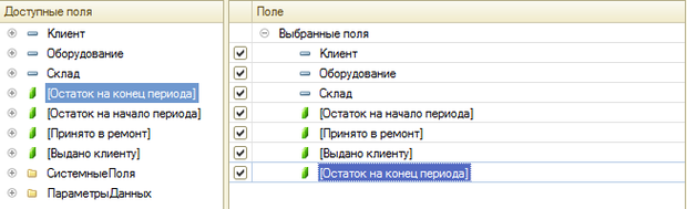 Поле КоличествоКонечныйОстаток – заменим на Остаток на конец периода (рис. 30, 30а).