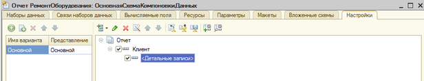 Рис. 32в. Фрагмент схемы компоновки данных Отчета. Вкладка Настройки.