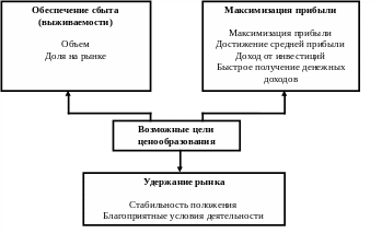 Любая фирма должна прежде всего определить, какую цель она преследует, выпуская конкретный товар. Если четко определены цели и положение товара на рынке, то проще и легче сформировать комплекс маркетинга и установить цену. Существуют три основные цели ценовой политики маркетинга: обеспечение сбыта (выживаемости), максимизация прибыли, удержание рынка.