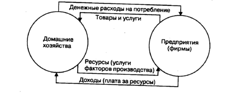 Предприятия включают факторы производства в производственный процесс и поставляют готовые потребительские товары и услуги домашним хозяйствам. Хлеб, одежда, бытовая электроника, транспортные и иные услуги, потребляемые домашними хозяйствами, заканчивают свое движение, и процесс кругооборота начинается снова.