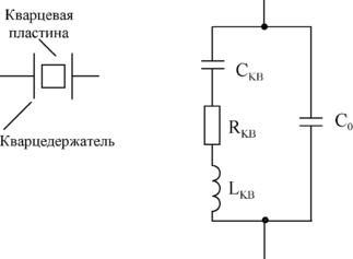 Кварцевый резонатор эквивалентен электрическому колебальному контуру. Эквивалентная схема кварцевого резонатора изображена на рис.2.29.б. Как видно, кварц эквивалентен последовательно включенным элементам LКВ, RКВ, CКВ, а в такой цепи может быть резонанс напряжения с частотой ωН =
