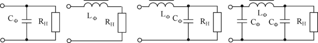 Фильтры состоят из конденсаторов и катушек индуктивности. Основные виды фильтров – емкостной, индуктивный и смешанный (рис.2.33).