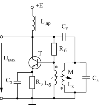 φ = 1800 для УОЭ, ψ = 1800 из-за обратной намотки катушек индуктивности LК и Lб (на рис.2.28 начало обмоток обозначены «»). Частота гармонического сигнала генератора определяется резонансной частотой контура ƒ 0=