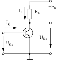 Наличие одного только усилительного элемента (биполярного или полевого транзистора) без других элементов (резисторов, конденсаторов и т.д.) не может обеспечить усиление переменного сигнала. Связано это с тем обстоятельством, что усилительный элемент требует определенной полярности на всех электродах, т.е. он может преобразовывать сигналы только пульсирующие (одной полярности). Следовательно, усилительное устройство должно содержать элементы, позволяющие преобразовывать переменные сигналы на входе усилительного устройства в пульсирующие сигналы на электродах усилительного элемента. Такими элементами являются источник питания (с постоянной ЭДС EК и резисторы RК и Rб), задающие определенные постоянные потенциалы на электродах усилительного элемента, т.е. режим работы по постоянному току, так называемую рабочую точку на ВАХ транзистора. Переменный электрический сигнал, подаваемый на вход, складывается с постоянной составляющей от источника питания и вызывает изменение потенциалов необходимой полярности на всех электродах усилительного элемента. В результате на выходе также будет получен усиленный переменный сигнал.