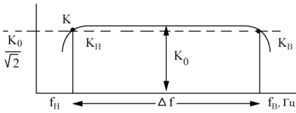 Полоса частот ∆f , в которой Кu изменяется в допустимых пределах, ограничена высшей и низшей граничными частотами fв и fн, т.е. ∆f= fв - fн, называется полосой пропускания усилителя.