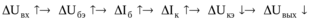 . Сопротивление коллектор-эмиттерного перехода транзистора падает и, согласно закона Ома, уменьшается напряжение Uкэ=Uвых. Сказанное можно записать с помощью условной диаграммы: