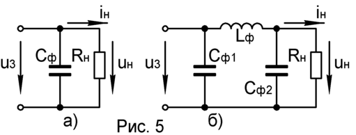 На рис. 5 представлены два типа применяемых фильтров: а) емкостной; б) П-образный CLC-фильтр; где u3 - напряжение на выходе выпрямителя без фильтра.