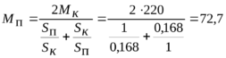 Максимальный пусковой момент соответствует условию Мп=Мк, следовательно Sп=Sк=1.