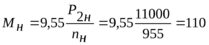 номинальный режим Мн=110 Нм, nн=955 мин-1