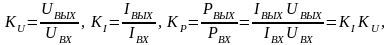 Важнейшей величиной, характеризующей усилительный каскад, является коэффициент усиления, равный отношению уровня выходного сигнала к уровню входного. Различают три коэффициента усиления – коэффициент усиления по напряжению, току и мощности: