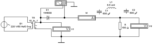 3.4. Выпрямитель c CLC-фильтром (фрагмент схемы представлен ниже)