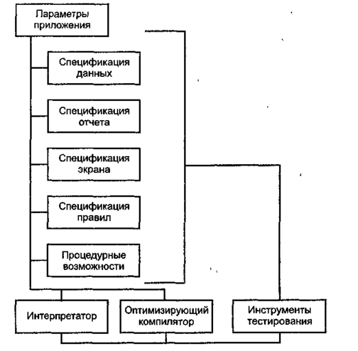 На рис. 1.7 приведены компоненты языка 4-го поколения. Как видим, здесь представлены все основные «генераторы», наличие которых уже стало традиционным для СУБД разных классов.