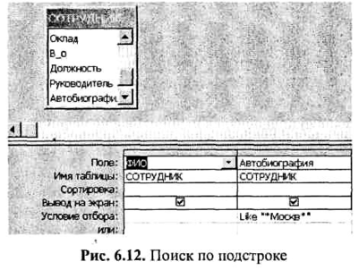 Можно осуществлять поиск и по подстроке. Для этого используется оператор Like (рис. 6.12)