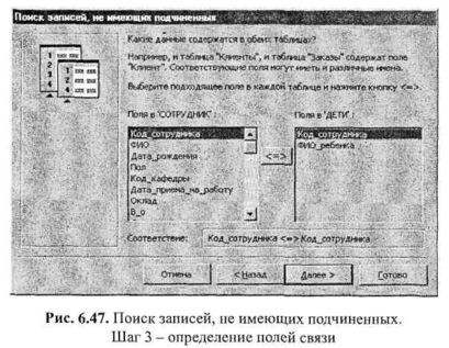 На следующем шаге определяются поля, по которым связаны выбранные таблицы (рис. 6.47).