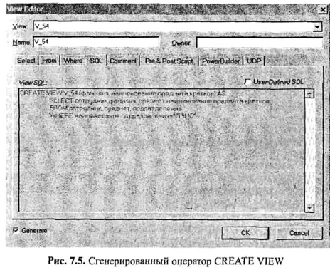 Таким образом, как мы видим, создать представление при использовании ERWin несколько легче, чем при написании оператора CREATE VIEW непосредственно на языке SQL.