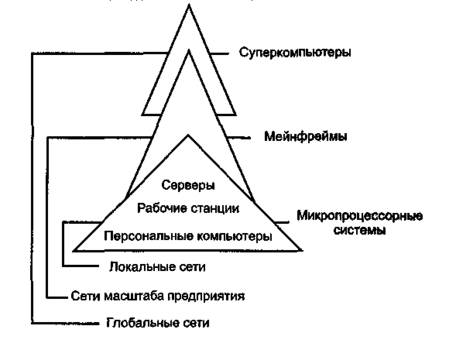 Тип используемых ЭВМ будет зависеть от масштаба создаваемой системы (рис. 1.9). В настоящее время в подавляющем большинстве случаев БнД реализуются в сетевой среде с применением множества разнотипных ЭВМ, причем их состав постоянно меняется в процессе эксплуатации банка данных.