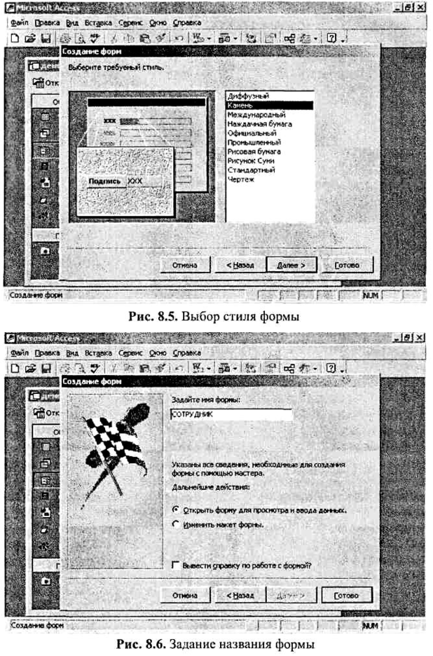 Создание формы завершается заданием ее имени (рис. 8.6). По умолчанию дается имя, совпадающее с именем источника данных.