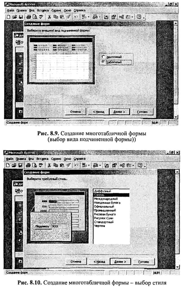 Следующий шаг (рис. 8.10 - выбор стиля) совпадает с аналогичным шагом при создании однотабличной формы.