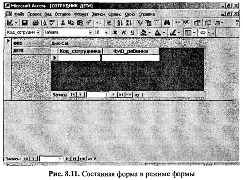 На рис. 8.11 представлен вид составной формы в режиме формы.