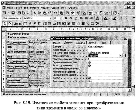 После этого на экране появится окно (рис. 8.21), в котором перечислены поля, включенные в форму (если форма содержит несколько вкладок, то будут выводиться только те элементы, которые включены в активную вкладку).