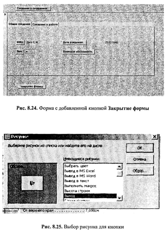 Если выбрать рисунок Закрытие формы, то кнопка будет иметь вид, представленный на рис. 8. 26.