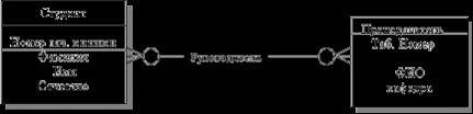 ER - диаграмма в нотации Чена для связанных сущностей "Студент" и "Преподаватель" имеет вид:
