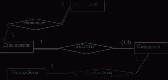 3 - сущность "День недели" полностью участвует в связи "Включает"