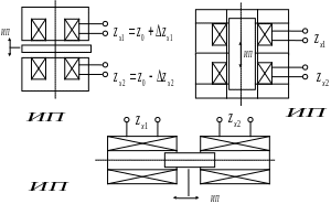 Рис. 3. Принципиальные схемы дифференциальных индуктивных преобразователей перемещения