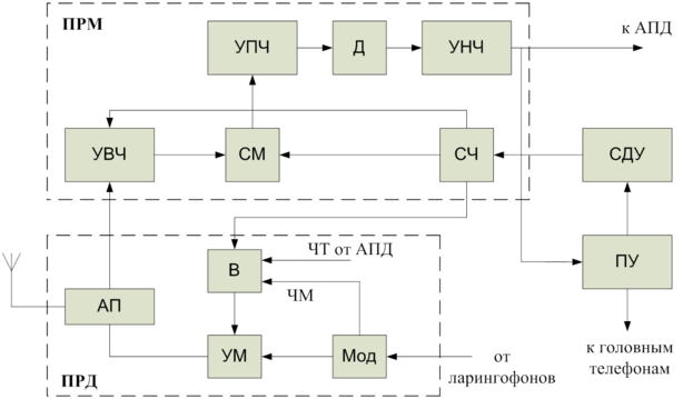 Принцип действия самолетной связной радиостанции поясняется структурной схемой, изображенной на рис. 4.2.