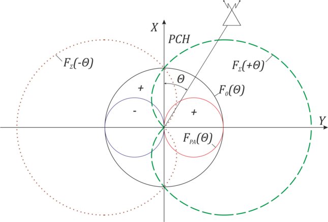 . В результате суммирования формируется сигнал, зависимость амплитуды которого от угла Ɵ в полярных координатах имеет вид кардиоиды (рис. 4.5).