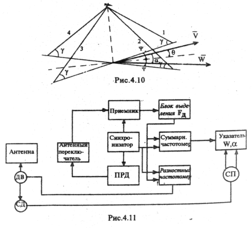 Принцип действия четырехлучевого доплеровского измерителя скорости и угла сноса.