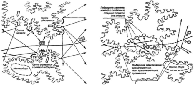 выдвигается как можно ближе к объекту, бесшумно или после внезапного огневого поражения