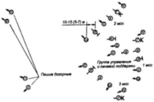 боевых групп первой линии (пеших дозорных) и их поддержку огнем.