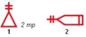 Командно-наблюдательный пункт роты: 1 - в обороне и в пешем порядке в наступлении; 2 - в движении на боевой машине пехоты (на другой технике - с соответствующим знаком). Командно-наблюдательный пункт взвода - с одной черточкой