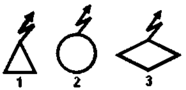 Радиостанции: 1 - подвижная; 2 - переносная; 3 - в танке (БМП, БТР, на автомобиле - с соответствующими знаками)