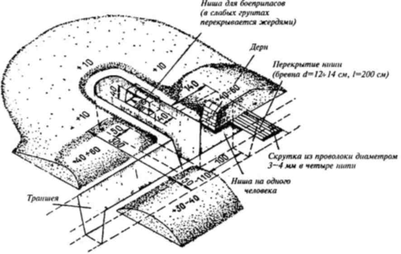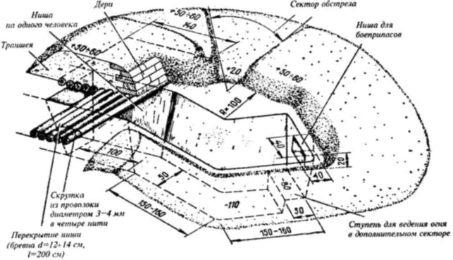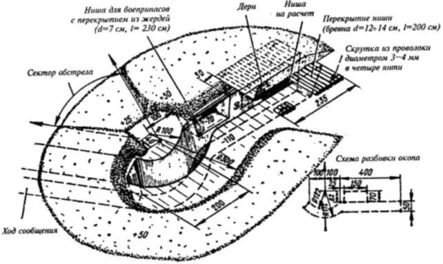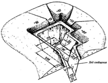 Рис. 12. Окоп для стрельбы из пулемета стоя