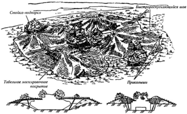 Рис. 26. Имитация техники в укрытии (окопе) с применением маскировочных средств