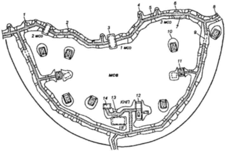 Рис. 1. Фортификационное оборудование опорного пункта мотострелкового взвода первого эшелона роты (вариант):