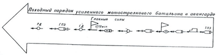 Походный порядок усиленного батальона, назначенного в передовой отряд; авангард.