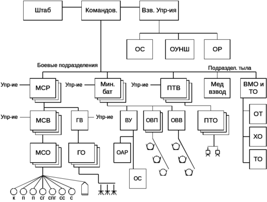 Мотопехотная рота - является основной боевой единицей батальона. Состоит из: - управления роты; трех мотопехотных взводов.